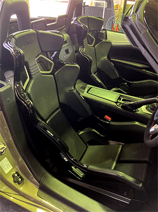 スーパー耐久に参戦の技術をフィードバックしたカーボン製のエアロを装着して、車重は1トン切りを達成。